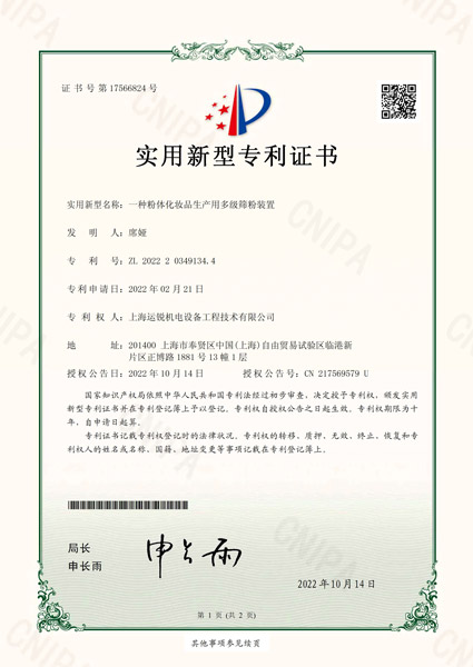 顺利交付纳米粉体生产线,新型碳硅负极材料生产线,多套果糖回温生产线,在食品/新材料/纳米粉体等领域的技术和工程能力有提升和进步,开发出具有自主知识产权的微纳米材料制备柔性智能生产线,同时申报多个国家专利和著作权被评为上海科技型企业。